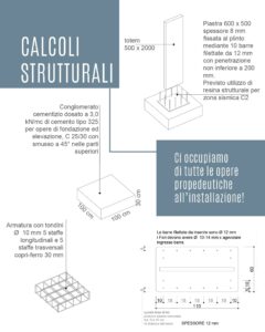 Per molte installazioni, soprattutto quelle outdoor, non basta progettare il totem o il pannello: servono plinti in cemento dimensionati correttamente, calcoli strutturali dedicati e verifiche di sicurezza in base al contesto.